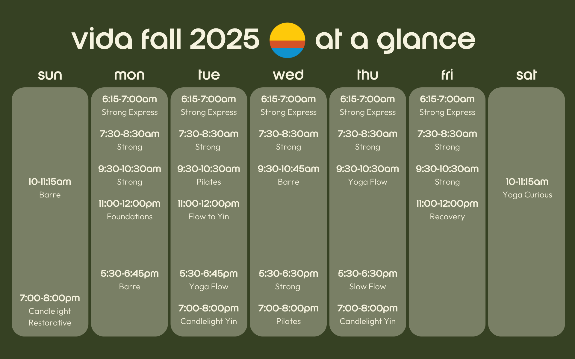 Our fall schedule will run from September 15 - December 19, 2025
