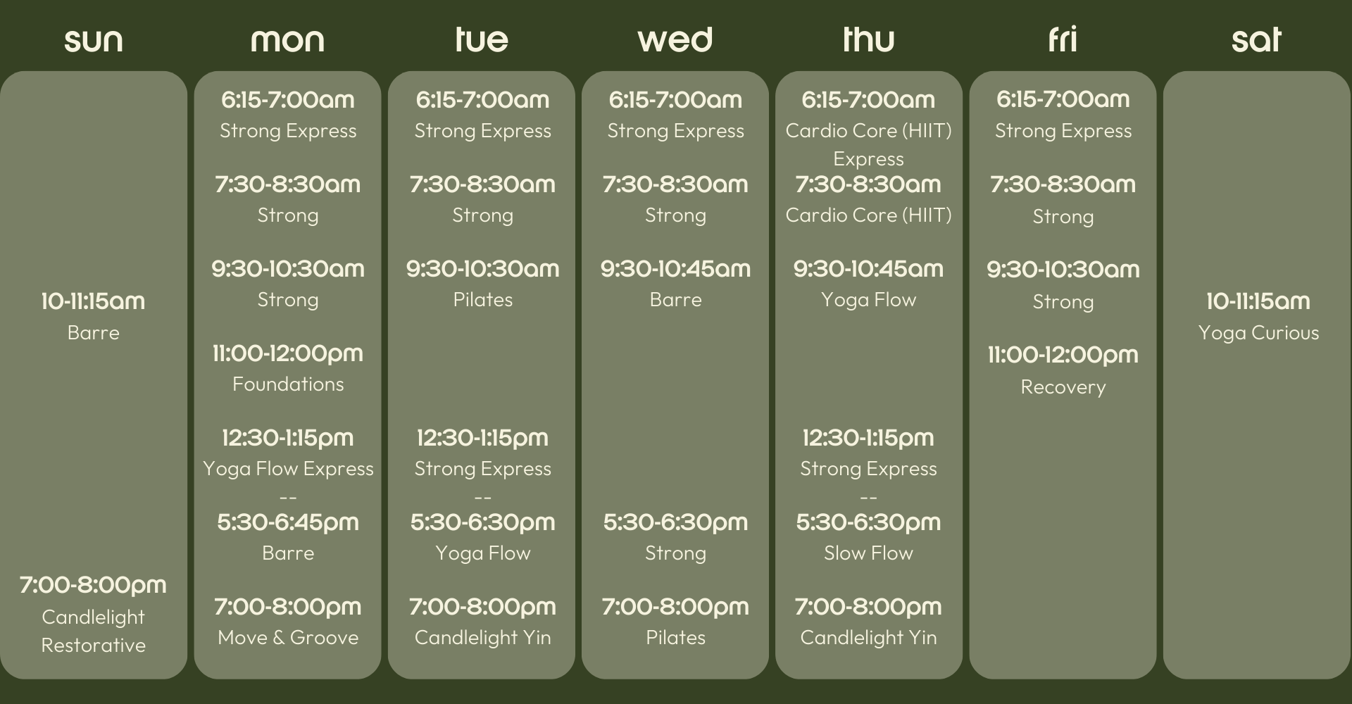 Find your class of choice and secure your spot by registering!